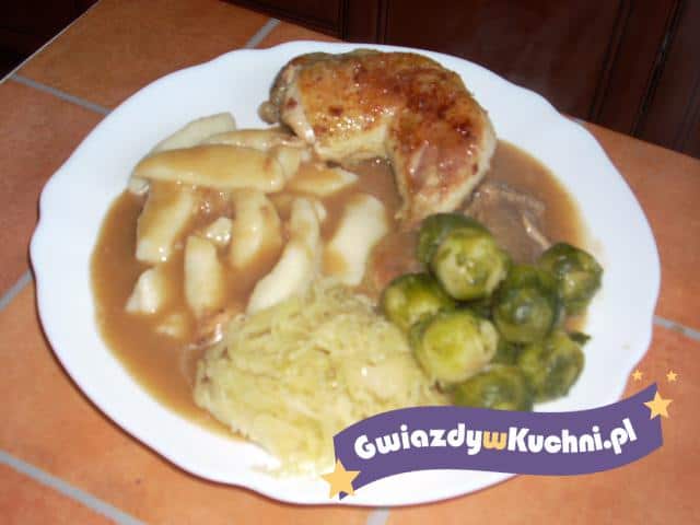 Obraną brukselkę i wypłukaną zalać osoloną wodą, gotować i odcedzić jak jarzyna będzie jeszcze twarda. Rozgrzać smalec, smażyć kotlety 20 minut z obu stron. Przyprawić solą i pieprzem. Wsypać na kotlety brukselkę, skropić sokiem z cytryny i dusić pod przykryciem, aż będzie miękka.