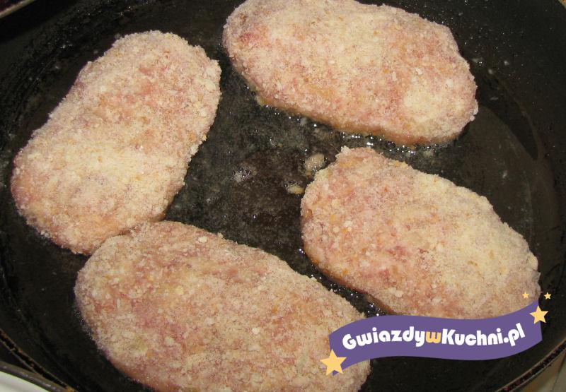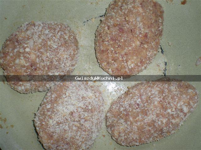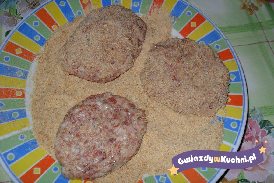Mięso mielone doprawiamy przyprawką. Pieczarki myjemy i sparzamy gorącą wodą. Do mięsa dodajemy jajko, bułkę tartą. Robimy kotlety w środek wkładamy pieczarkę. Smażymy na rozgrzanej oliwie.