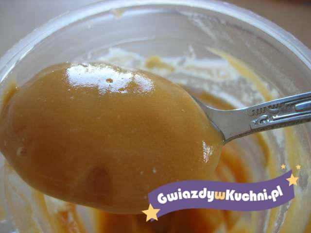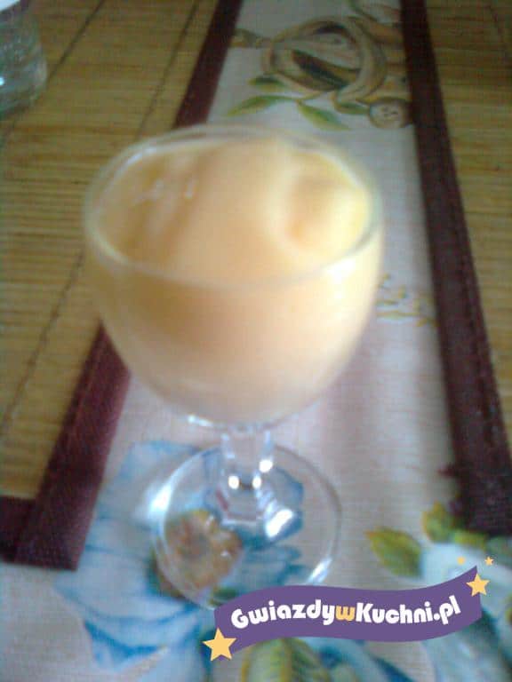 Śmietanę należy schłodzić w lodówce i ubić z cukrem pudrem, cukrem waniliowym i ajerkoniakiem. Na koniec ubijania dodać rozpuszczoną w wodzie żelatynę. Krem przekładać od razu do pucharków. Podawać po schłodzeniu w lodówce.