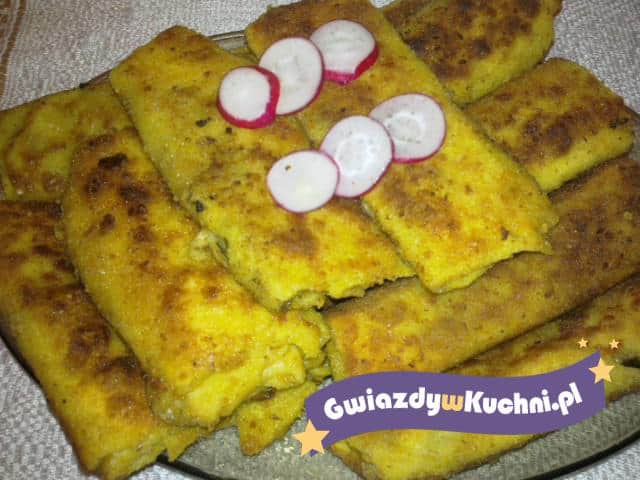Na każdy naleśnik rozłożyć farsz, dokładnie zwinąć, panierować w jajku i w tartej bułce. Smażymy na rozgrzanym oleju na złoty kolor. Smacznego!