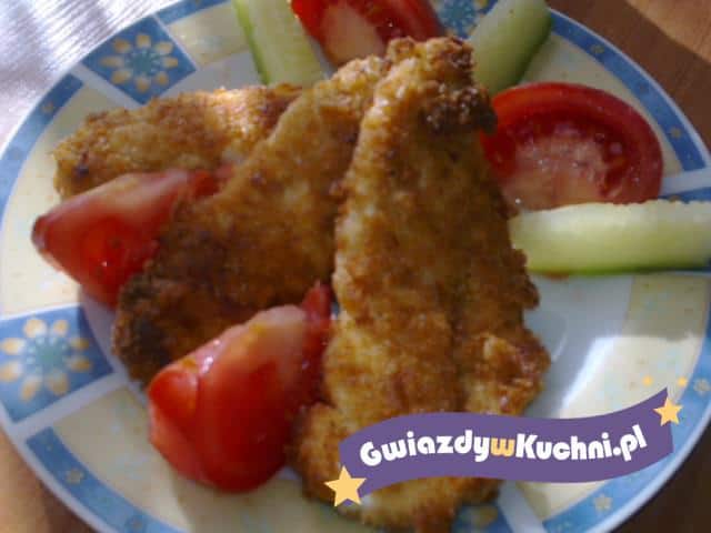Mięso umyć, pokroić na paski, posolić i popieprzyć. Przełożyć do pojemnika i wymieszać z jogurtem. Mięso szczelnie zafoliować i wstawić najlepiej na noc do lodówki. Panierujemy w pokruszonych krakersach i smażymy na złoty kolor z obu stron. Najlepiej smakują ze świeżymi warzywami i sosem np; czosnkowym. Smacznego!