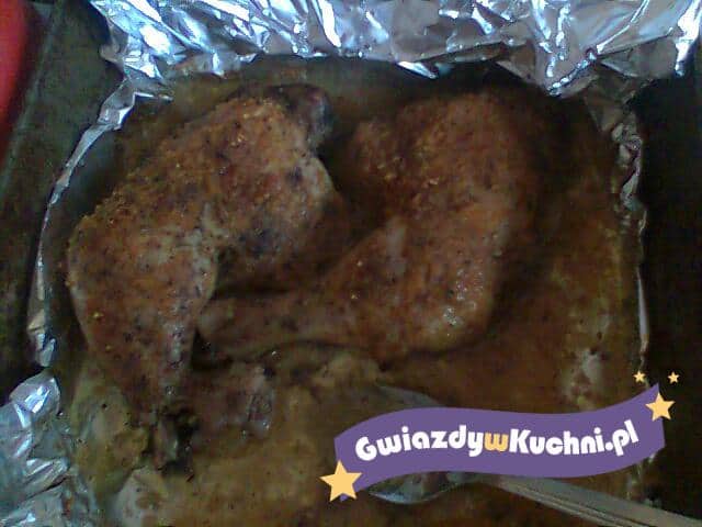 Kurczaka natrzeć solą i ziołami, odstawić do lodówki na 3 godz. Włożyc do naczynia żaroodpornego, skropić maggi, podlać 5 łyżkami wody i piec 1 godz w temp 200C.