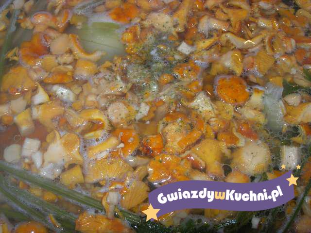 Koperek należy umyć, a następnie posiekać dość drobno. Kurki należy oczyścić, a następnie umyć. Na patelni należy rozgrzać olej i usmażyć na nim grzyby doprawiając je do smaku solą oraz pieprzem. Smażyć do momentu odparowania soku z grzybów, następnie dodać sos sojowy i ciągle mieszając podsmażać około 3- 5 minut. Na koniec posypać koperkiem.