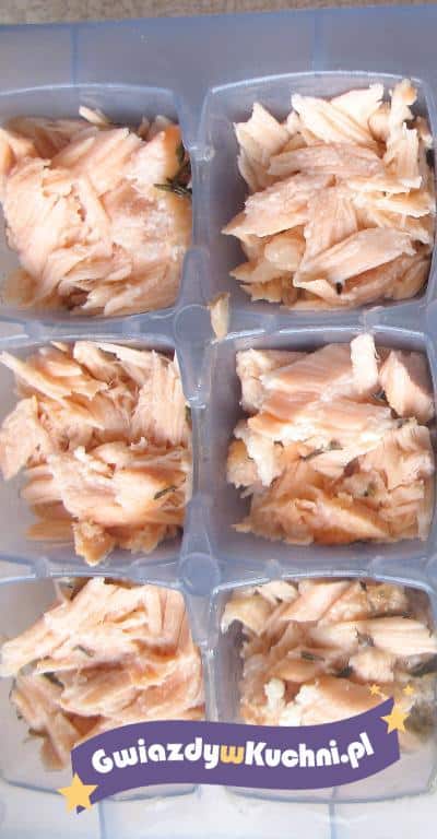parujemy 25 min. Studzimy, rozdrabniamy, zwracając baczna uwagę na oddzielenie ości. Układamy w foremkach do zamrażania lodu, zamrażamy. Wtedy zawsze możemy dla dziecka wyjąc i rozmrozić odpowiednia porcję.