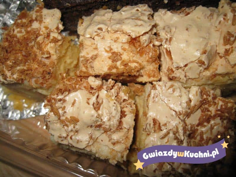Do miski z ubitym na bardzo sztywną pianę białkiem, ustawionej w misce z lodem wsypać stopniowo cukier i ucierać aż utworzy się gęsta masa a wtedy dodać sok z połowy cytryny i dokładnie wymieszać. Zimnym lukrem smarować ciasto.