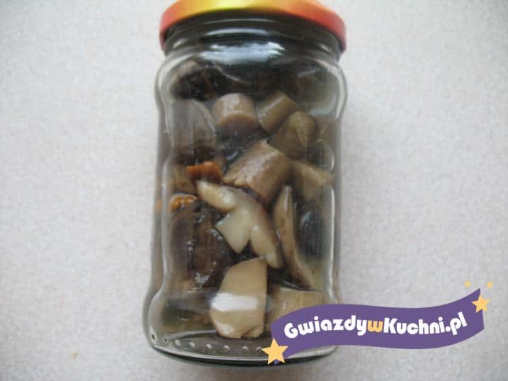 Prośnianki (oraz inne znalezione pojedyncze grzybki) oczyszczamy, kroimy na części, obgotowujemy w osolonej wodzie, odcedzamy, przekładamy do słoików. Z pozostałych składników zagotowujemy zalewę, zalewamy grzyby, zakręcamy. Pasteryzujemy 20 min.