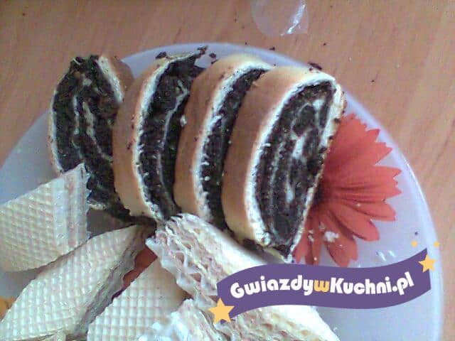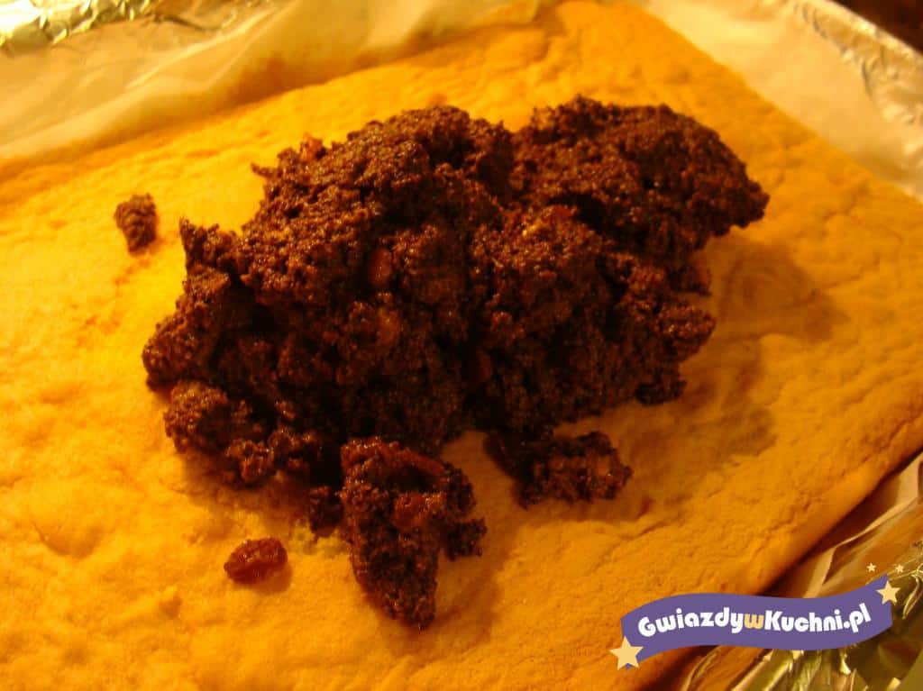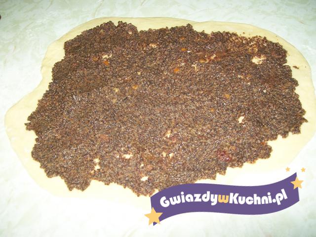 Margarynę włożyć do rondla, roztopić. Mak opłukać, odcedzić, zalać wrzącą wodą i trzymać na ogniu tak długo, aż da się rozetrzeć w palcach. Odcedzić przez sito, dodać do margaryny, dodać też cukier, skórkę cytrynową, olejek migdałowy i rodzynki. Smażyć kilka minut mieszając. Wymieszać z pianą, ostudzić.