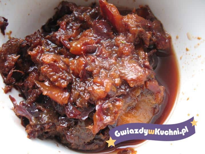 Ze śliwek wyjmujemy pestki, zasypujemy cukrem i przesmażamy, dodajemy aromat i jeśli ktoś lubi rodzynki. Znakomita do nadziewania ciast, bułeczek lub jako deser.
