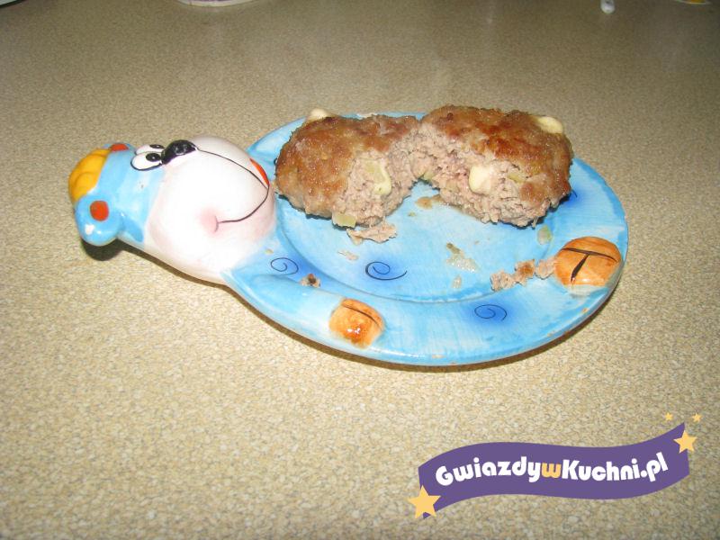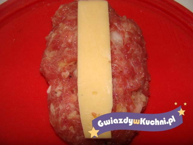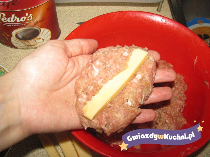 Z mięsa, jajka, bułki namoczonej odciśniętej z wody i przypraw wyrabiamy ciasto. Formujemy placek na który układamy ser żółty. Zlepiamy i obtaczamy w bułce tartej. Smażymy na złoto.