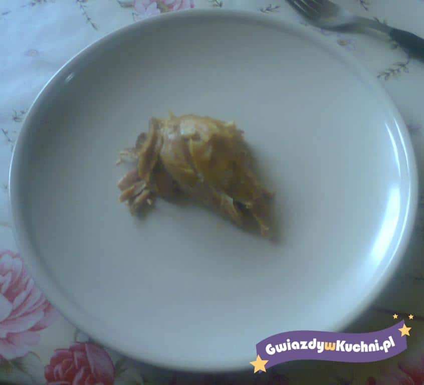Udka opłukać, osuszyć, natrzeć solą oraz pieprzem, posypać delikatnie przyprawą do mięs, i dusić na rozgrzanym oleju z dodatkiem pokrojonej na małe kawałki marchewką, od czasu do czasu mięso obracać. Gotowe udka od dzielić od kości. Mięso podaję wraz z ziemniakami, marchewkę z mięsa również można dodać do dania.