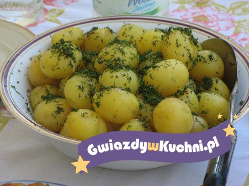 Ziemniaki myjemy. Wkładamy do garnuszka z wodą. Następnie solimy, dodajemy masło. Gotujemy 30 minut pod przykryciem na małym ogniu. Odlewamy i gotowe.