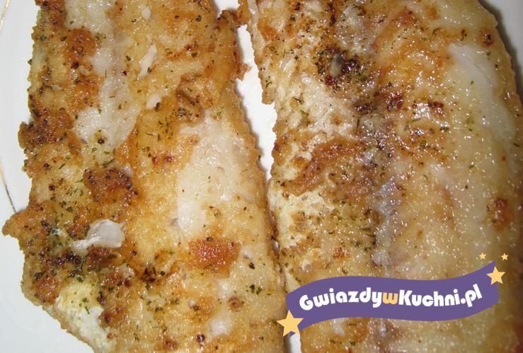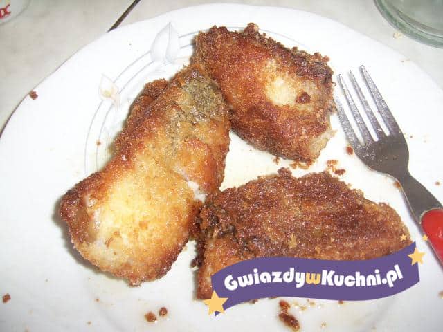 Rybę umyć, osuszyć i podzielić na dzwonka. Jajka roztrzepać i wymieszać z solą i przyprawą do ryb/ Kawałki ryby panierować w jajku i bułce tartej. Smażyć na głębokim oleju z każdej strony.