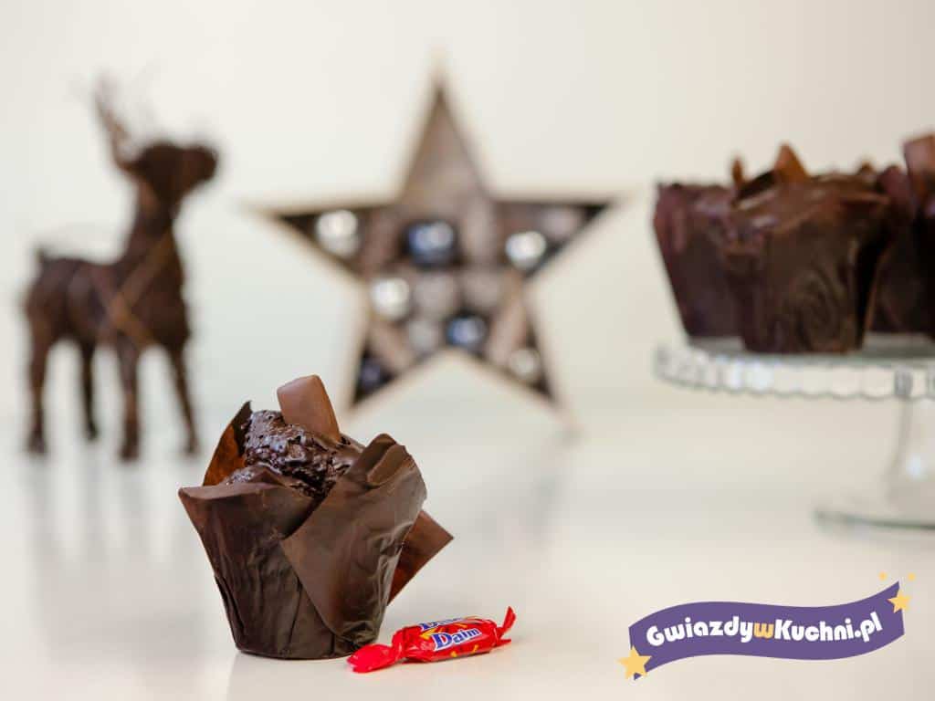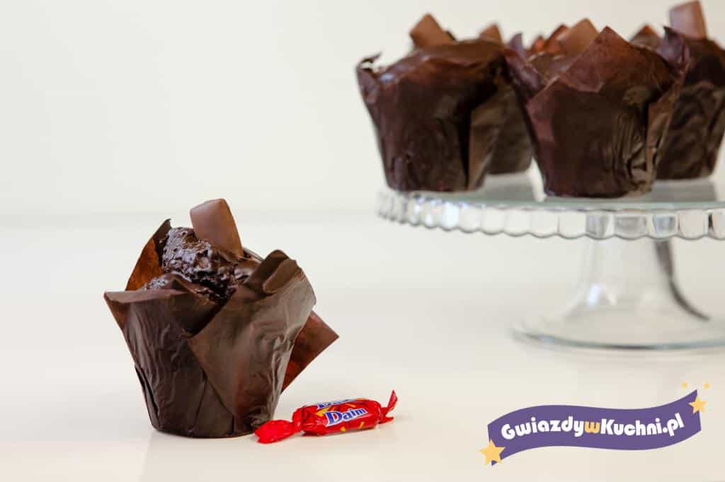 na puch, delikatnie połącz z przesianą mąką i ostudzoną masą czekoladową. Blachę do muffinek wyłóż papilotkami. Napełnij je do połowy ciastem, do każdej włóż fragmenty pokruszonego wcześniej batonika Daim i dopełnij ciastem do 3/4 wysokości papilotek. Piecz 15 min w piekarniku rozgrzanym wcześniej do temp. 220°C. Przygotuj mus: pokruszony batonik Daim stop w kąpieli wodnej. Oba serki utrzyj dokładnie ze sobą, a następnie zmiksuje z ostudzoną masą karmelowo-czekoladową z batonika Daim. Mus przełóż do szprycy z gwiaździstą końcówką i wyciśnij na ostudzone muffiny.