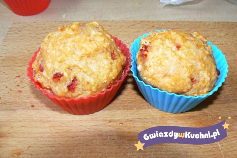 Cebulę pokroić w kosteczkę, zeszklić na maśle, ostudzić, wrzucić do miski. Ser zetrzeć na tarce, paprykę pokroić w kostkę, dodać wszystko do cebuli, wymieszać. Wsypać mąkę wymieszaną z proszkiem do pieczenia i solą, wymieszać. Jajko roztrzepać z olejem i maślanką. Wlać do miski z pozostałymi składnikami, wymieszać do połączenia składników (nie za długo, gdyż zbyt długie mieszanie spowoduje, że muffinki będą twarde). Do foremek lub formy do muffinek włożyć papilotki i łyżką nakładać porcje ciasta. Wstawić do piekarnika nagrzanego do 180c i piec 25-30 minut. Po 5 minutach od wyjęcia z piekarnika muffinki wyjąć i zostawić do ostygnięcia na kratce. Smaczne na ciepło i zimno.