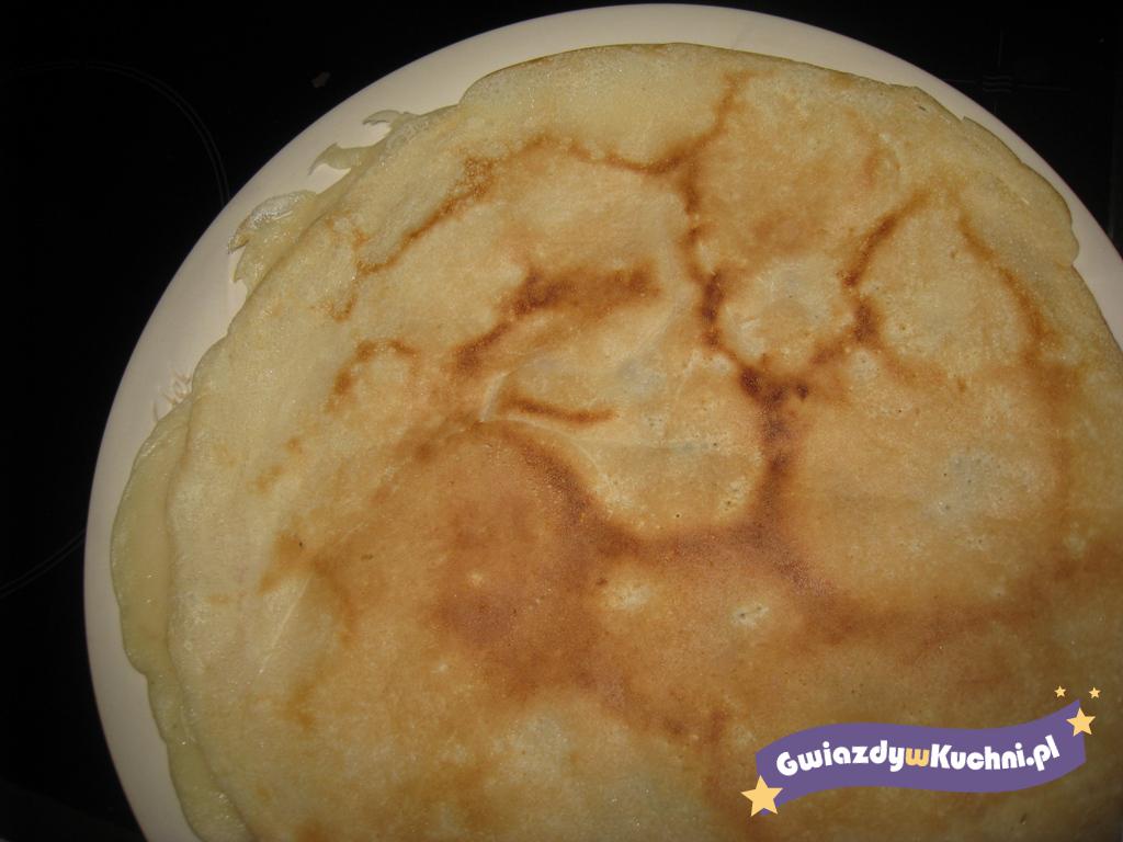Do mąki dodaj jajka, olej i szczyptę soli. Wszystko wymieszaj z mlekiem, aby miało konsystencję gęstej śmietany. Smaż na rozgrzanym oleju z obu stron.