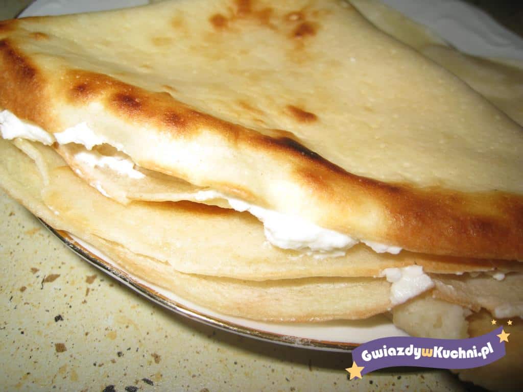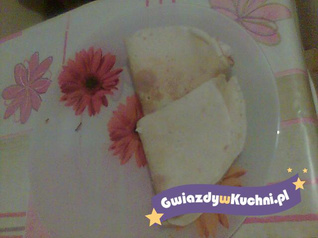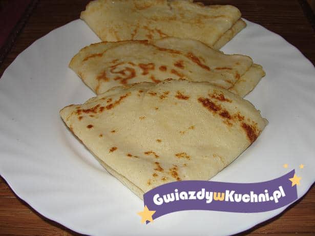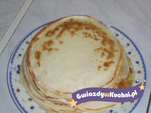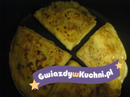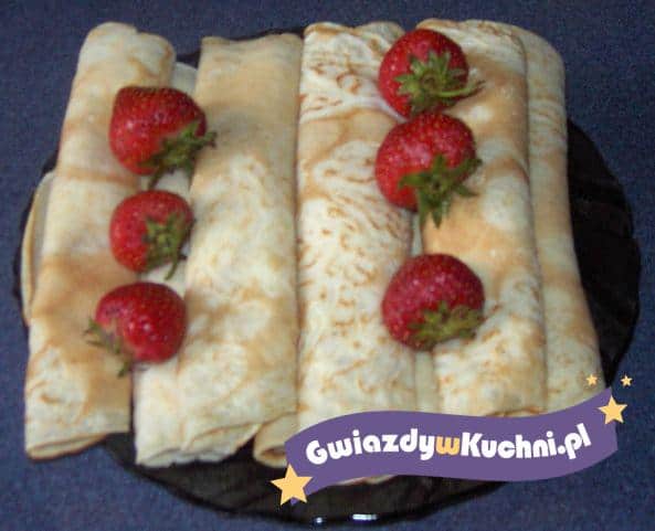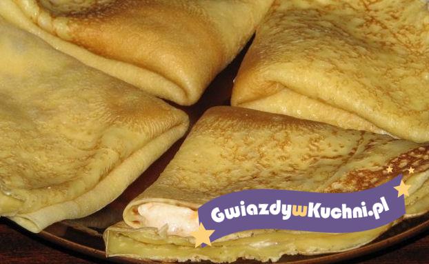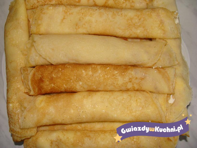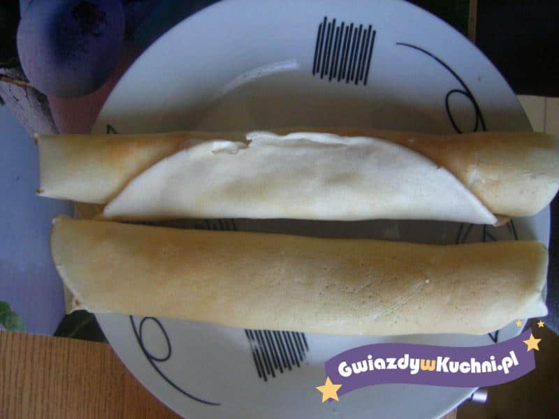 Ser rozrobić ze śmietana i cukrami. Przesmarować naleśniki. Polać naleśniki śmietana z cukrem.