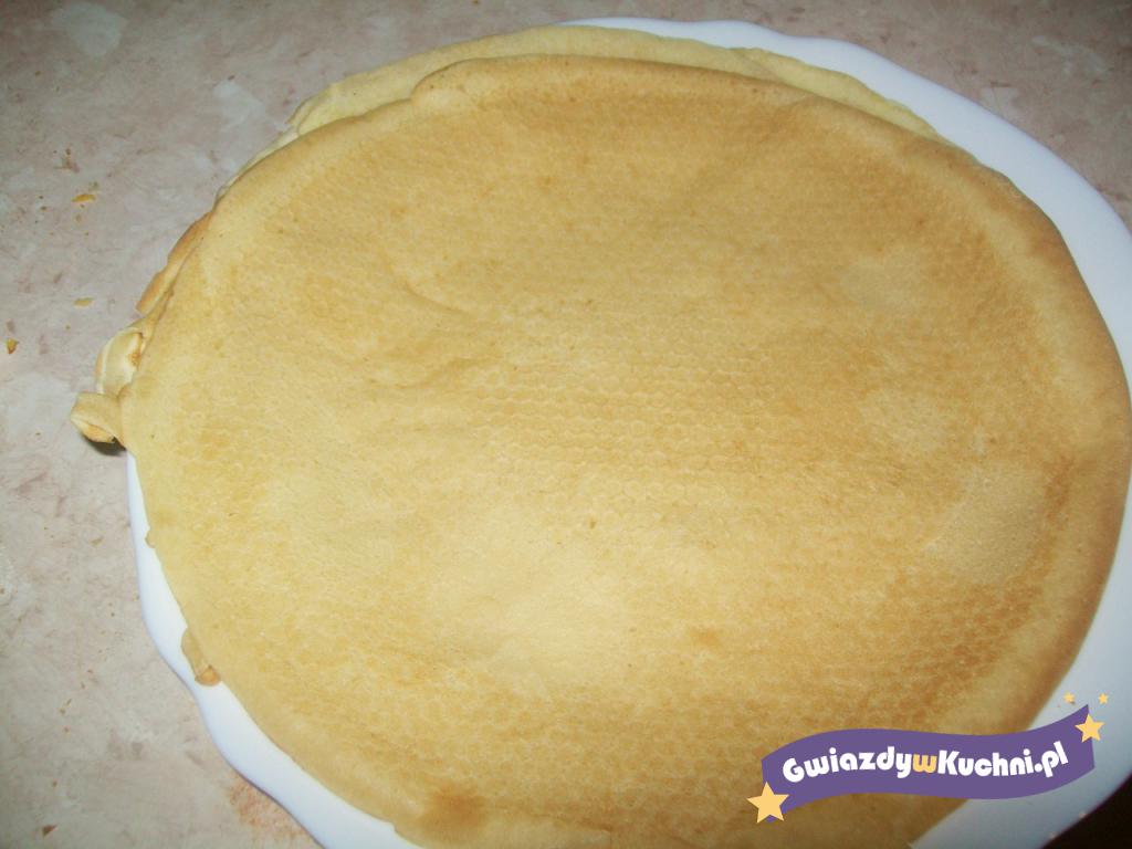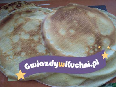 Śliwki wydrylować, gotować z cukrem, miętą i winem. Odcedzić. Z mleka, mąki, jajek przygotować ciasto na naleśniki. Na patelni usmażyć naleśniki. Każdy z nich napełnić śliwkami i położyć na patelni. Z białek i cukru ubić pianę, dodać kompot ze śliwek, polać tym sosem zawinięte naleśniki. Wstawić do piekarnika i piec przez kwadrans.