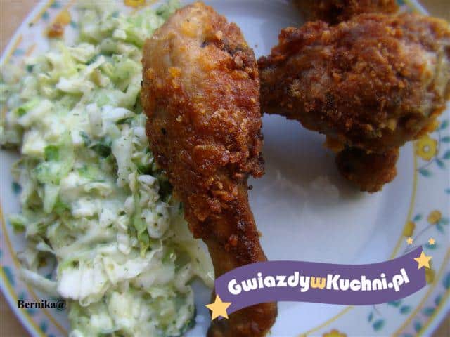 Pałki obgotowuję przez ok 15-20 minut. Żeby uniknąć że mięso po upieczeniu z wierzchu będzie usmażone a w środku surowe. Po wystygnięciu przekładam do miski gdzie przyprawiam solą i pieprzem, papryką czerwoną i przyprawą węgierską. Zostawiam na min 2 h w lodówce. (można na całą noc). Następnie panieruję najpierw w jajku potem w mieszance bułki tartej i drobno pokruszonych płatkach z dodatkiem pieprzu i papryki słodkiej. Wkładam pałki na patelnię z rozgrzanym olejem. Smażę tak żeby były lekko zanurzone w oleju (można we frytkownicy).