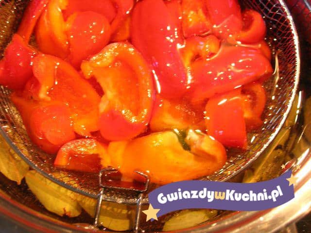 Paprykę przed włożeniem do słoików sparzyć we wrzącej wodzie.