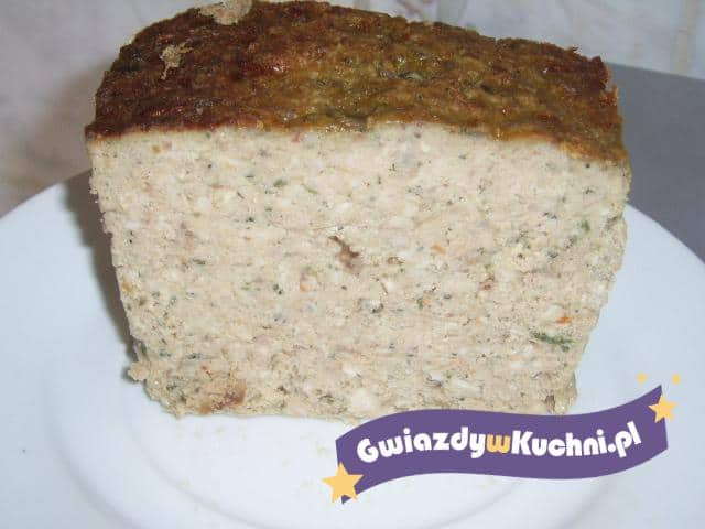 Pokrojone mięsa włożyć do garnka razem z boczkiem, obraną cebulą, marchewką, pietruszkę, liścia laurowego i pieprz. Zalać wodą wszystko i gotować pod przykryciem 3 godziny do miękkości. Pod koniec gotowania włożyć na 15 minut wątróbkę. Garnek zdjąć z ognia i dołożyć bułkę pokrojoną w kromki. Pozostawić, aż wystygnie, a bułka wchłonie sos z mięsa. Ugotowane mięso razem z bułką i jarzynami zmielić w maszynce trzy razy. Dodać gałkę muszkatołową, żółtka, sól, pieprz, i dobrze wyrobić w malakserze. Z białek ubić pianę i dodać do wyrobionej masy mieszając. Brytfannę wysmarować tłuszczem i posypać tartą bułką, wypełnić do 2/3 wysokości masą mięsną. uklepać równo i wstawić do piekarnika nagrzanego do 220st.C i piec godzinę.
