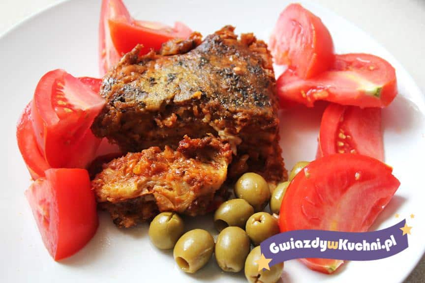 Cebulę drobno kroimy i szklimy na oliwie. Pozostałe warzywa obieramy i gotujemy na parze do miękkości. Studzimy, rozdrabniamy tłuczkiem do ziemniaków. Wszystkie składniki łączymy, mocno przyprawiamy i wyrabiamy z jajkami. Masę przekładamy do wyłożonej papierem do pieczenia blachy keksówki. Pieczemy ok 60 min w 200st.