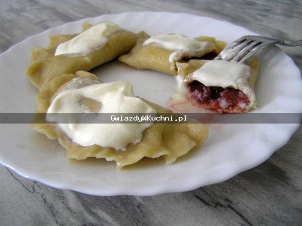 Przed podaniem polać śmietaną i posypać cukrem.