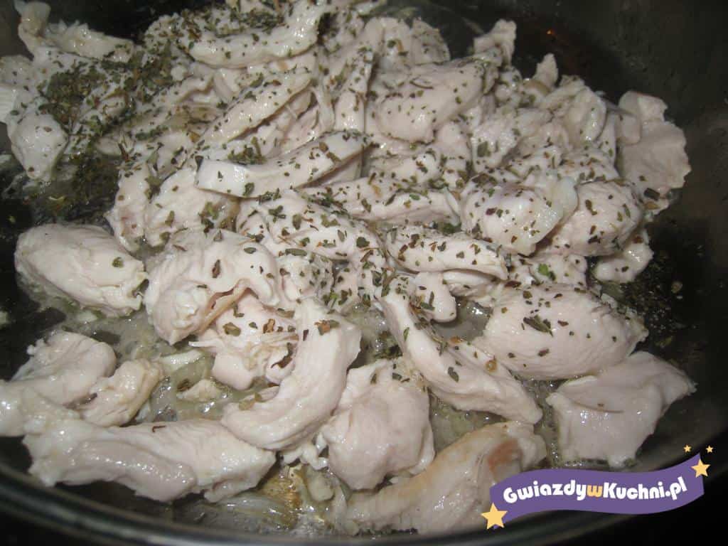 Piersi umyć i pokroić, podsmażyć na masełku, dodać przyprawy do mięsa, dusić pod przykryciem z dodatkiem wody.