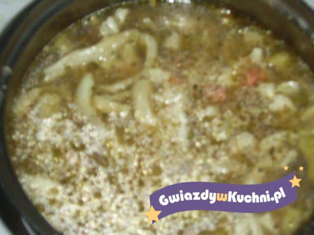 Zalać zimną wodą flaki dodać marchewki, wołowinę i gotować ok. 2 godz.