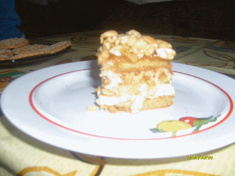 składniki na karmel wkładamy do garnka i zagotowujemy cały czas mieszając. Gotujemy do uzyskania jednolitej masy. Gorący karmel nakładamy na placek rozwałkowany na blasze. Pieczemy około 40 minut w temperaturze 180*C. W tej samej temperaturze pieczemy drugi placek.