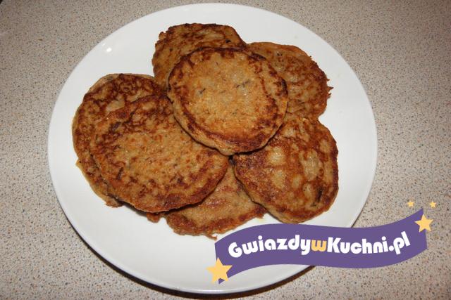 Wszystkie składniki mieszamy na gładką masę. Mąki dosypujemy na koniec tyle, aby ciasto nie było za mokre. Smażymy na małej ilości oliwy. Można podać z ketchupem.