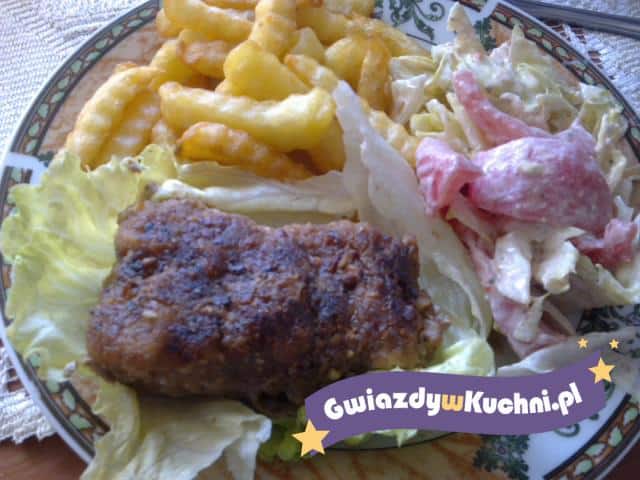 Mięso umyć, osuszyć i posypać solą i pieprzem. Posmarować cienko musztardą i odstawić na 10 minut. Orzechy rozdrobnić i wymieszać z tartą bułką. Polędwicę panierujemy w mące, jajku, orzechach i smażymy na maśle z oliwą. Ja lubię wysmażone więc smażę je dłużej. Propozycja podania na zdjęciu.