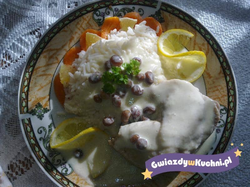 Sos przyprawić do smaku solą, cukrem i szczyptą białego pieprzu. Na talerz nakładamy porcję ugotowanego na sypko ryżu, mięska, polewamy sosem. Smacznego.
