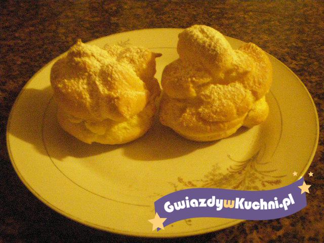 Zagotować szklankę wody z masłem. Do wrzątku wsypać mąkę, dokładnie wymieszać, aby nie powstały grudki, i trzymać na małym ogniu na płytce azbestowej, dopóki ciasto nie zacznie odstawać od ścianek i dna naczynia. Wówczas zdjąć z ognia i mieszając drewnianą łyżką wbijać po jednym jaju. Jakość ciasta parzonego zależy od dokładności i czasu ubijania. Następnie jajo można dodać dopiero wtedy, gdy poprzednie całkowicie połączy się z ciastem. Gotowe ciasto zostawić na chwilę, a następnie wykładać je, formując dwiema łyżkami kule i układając je na wysmarowanej tłuszczem blasze. Wstawić do piekarnika ok. 160 stopni c, przez 15-20 min. Gdy nabiorą jasnozłotego koloru, wyjmować. Po ostygnięciu wyrośnięte ptysie przeciąć poziomo i napełnić śmietanką ubitą z cukrem pudrem.