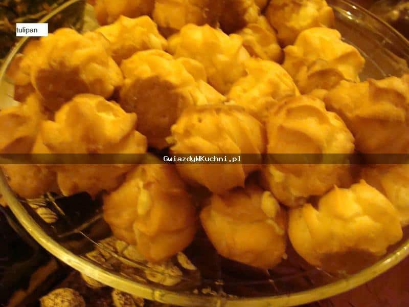 Blachę posmarować tłuszczem. Ciasto układać łyżką lub wyciskać szprycą na blachę w dość dużych odstępach. Piec w bardzo gorącym piekarniku przez ok. 20-30 minut. Po ostudzeniu przekroić i napełnić i bitą smietaną lub śmietaną.