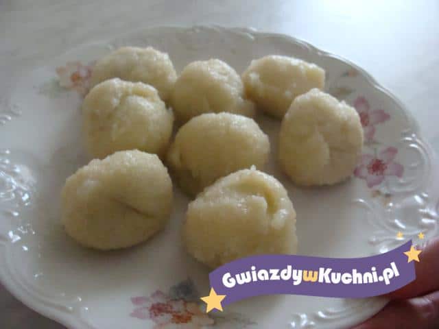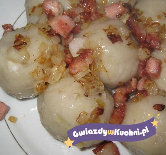Ziemniaki gotujemy w mundurkach, studzimy, obieramy i rozgniatamy. Z ziemniaków, jajka i mąki zagniatamy ciasto. Mięso podsmażamy z czosnkiem przeciśniętym przez praskę, majerankiem, solą i pieprzem. Z ciasta ziemniaczanego formujemy placki, pośrodku układamy porcję farszu mięsnego. Zawijamy formując kulkę. Gotujemy w osolonej wodzie przez minutę od wypłynięcia. Pyzy możemy podawać z zasmażką lub z sosem pieczarkowym.