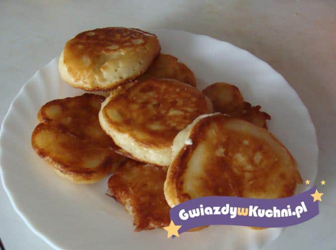 Drożdże rozetrzeć z łyżką cukru, wymieszać ze słodkim mlekiem i pozostawić do wyrośnięcia. Jaja umyć, wybić ze skorupek, oddzielić żółtka od białek. Żółtka utrzeć z cukrem, wymieszać z przesianą mąką, drożdżami, roztrzepanym zsiadłym mlekiem, solą i stopionym masłem. Wyrobić dobrze ciasto łyżką lub ubijaczką elektryczną, aż ukażą się pęcherzyki. Następnie wymieszać z ubitą pianą z białek i pozostawić ponownie do wyrośnięcia. Na gorący tłuszcz kłaść łyżką okrągłe placuszki i smażyć z obu stron.