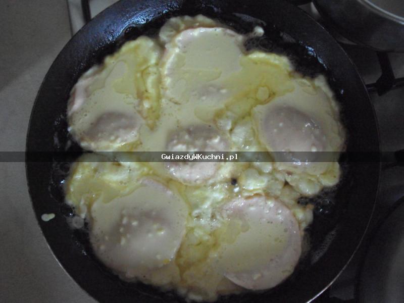 Mleko miksujemy z jajkiem, dodajemy sól i mąkę. Taczamy salami w cieście. Następnie smażymy na rozgrzanym oleju z każdej strony na złoty kolor.