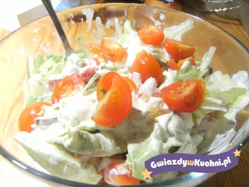 2. Z podanych składników przygotować sos i polać nim sałatkę.