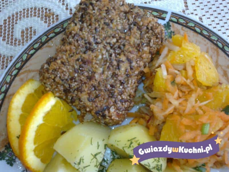 Umyty, osuszony schab pokroić w plastry, rozbić je i przyprawić solą i pieprzem-odstawić na 10minut. Pieczarki oczyścić, pokroić i podsmażyć dodać majeranek, po szczypcie soli i pieprzu. Na kotlety położyć porcję pieczarek i złożyć według swojego upodobania, ja złożyłam w koperty. Kotlety obtoczyć w mące, moczyć w jajku i panierce. Smażymy na rozgrzanym tłuszczu na złoty kolor.
