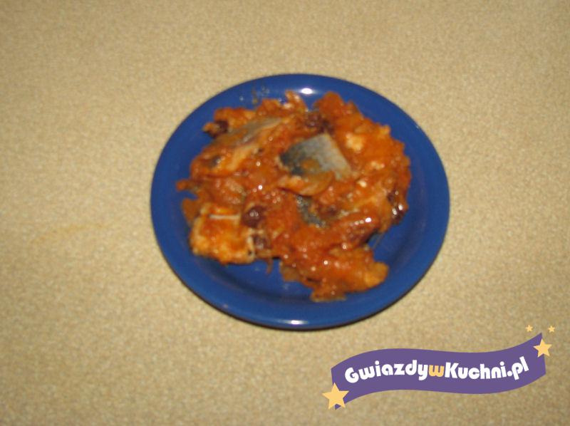 Marynatą zalać śledzie i cebulę.