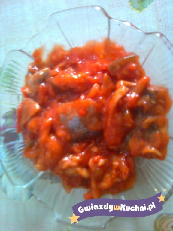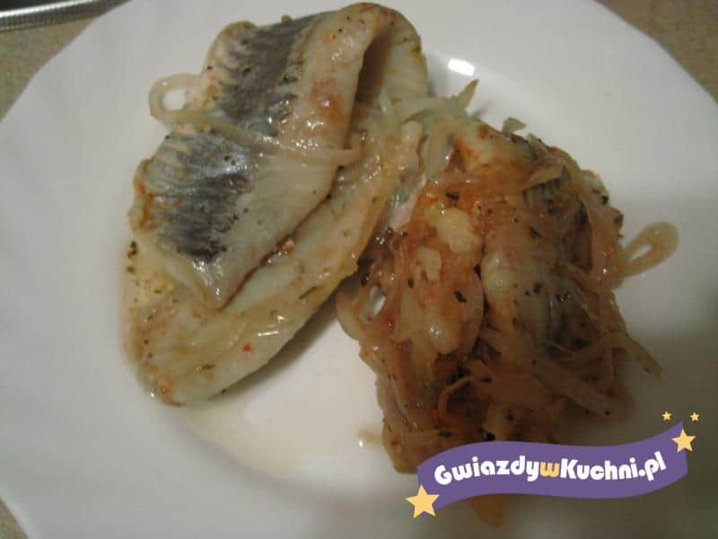 Śledzie wymoczyć. Na oleju usmażyć dużą cebulę tak aby się nie przypaliła. Na końcu dodać rodzynki, koncentrat pomidorowy i sok z połowy cytryny. Chwilkę jeszcze smażyć. Najlepiej w słoiku lub w jakimś naczyniu z pokrywką układamy warstwami – pokrojone na kawałki śledzie i na śledzie cebulę z rodzynkami i znów śledzie itd. Przekładamy gorącym prosto z patelni, nie solimy – śledzie są dosyć słone. Po wystudzeniu wstawiamy do lodówki. Najlepsze na następny dzień.