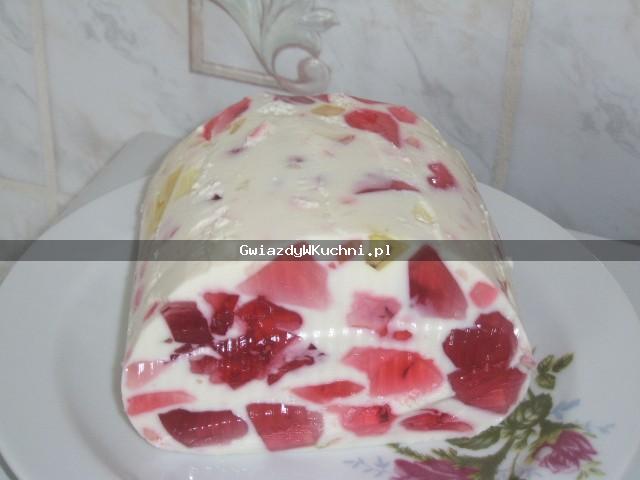 Galaretkę cytrynową rozrobić w szklance wody i dodać do niej żelatynę, pozostawić do ostygnięcia.