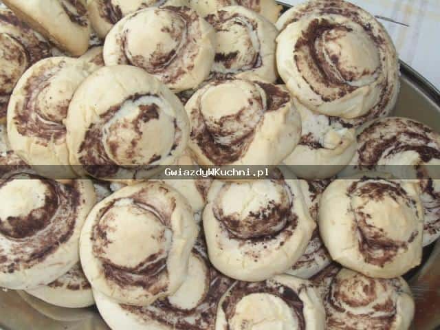 Utrzeć margarynę z cukrem pudrem , dodać jajko i dalej ucierać, następnie dodać do masy wymieszane mąki z sodą. Stopniowo dosypywać mąkę ziemniaczaną tak, by ciasto było elastyczne, ale nie za suche. Wszystko razem utrzeć. Ciasto dzielić na małe kulki (wielkości orzecha włoskiego)