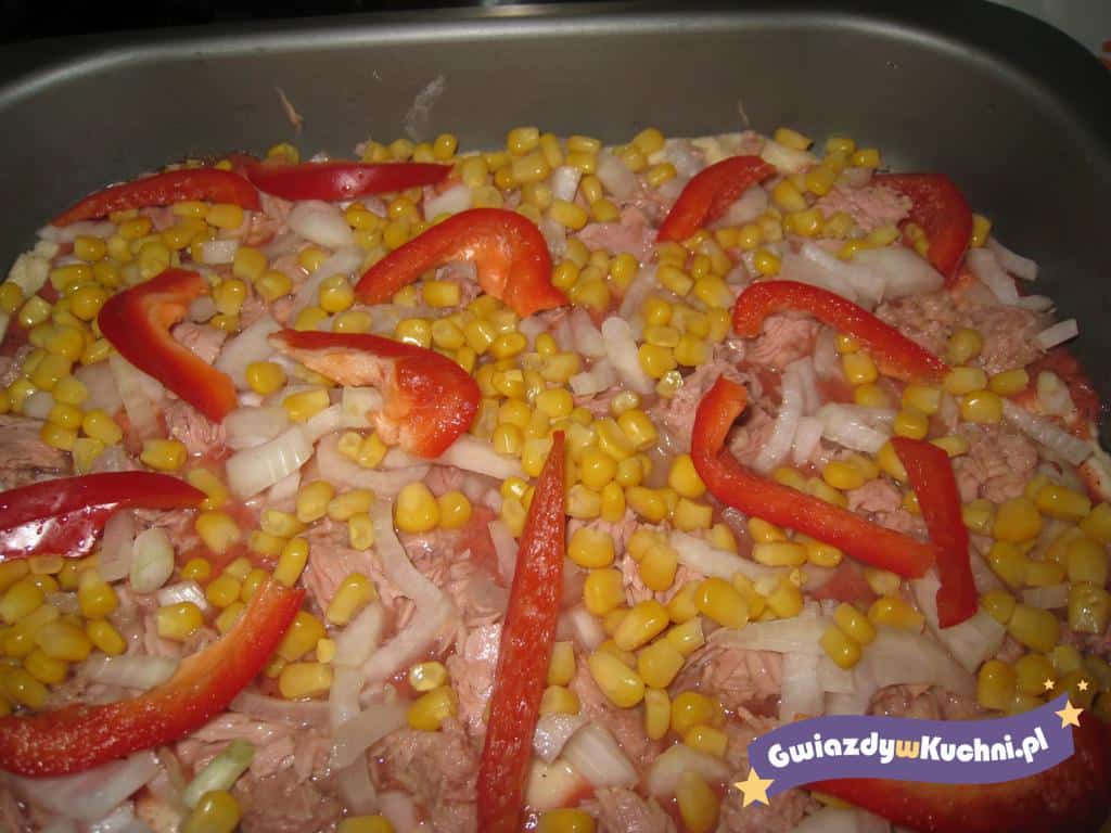 Do garnka wlewamy szklankę letniego mleka, dodajemy cukier, szczyptę soli, rozkruszone drożdże oraz łyżkę mąki. Ciasto odstawiamy do wyrośnięcia. Następnie do miski z resztą mąki dodajemy oregano, wlewamy wyrośnięty rozczyn, dodajemy jajko i solimy. Dokładnie wyrabiamy ciasto. Następnie wylewamy na wysmarowaną masłem i posypaną bułką tartą blachę. Ciasto nakłuwamy widelcem, smarujemy olejem oraz koncentratem pomidorowym.