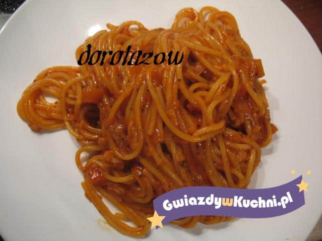 Cebule kroimy w kostkę, seler ścieramy na tarce, podsmażamy na oliwie. Dodajemy przecier, dynie pokrojona w kosteczkę, masło, przyprawy, trochę wody i gotujemy ok 10 min. U mnie został podany z makaronem spaghetti a całość posypana startym na małe wiórki żółtym serem.