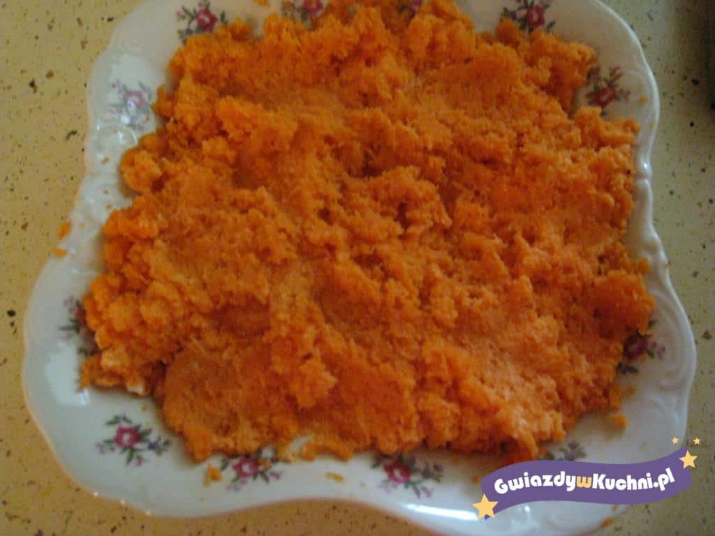 Marchewki i rzodkiew obieramy, płuczemy i ścieramy na tarce o małych oczkach, skrapiamy sokiem z cytryny, aby zachowały kolor. Mieszamy, dodajemy cukier, pieprz, oliwę i całość dokładnie mieszamy.
