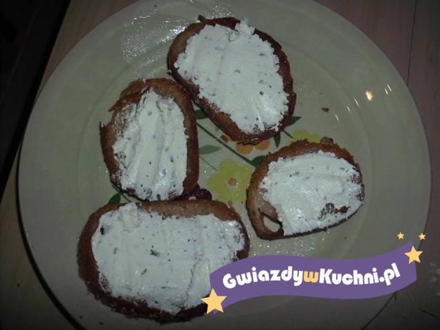 Biały ser kruszymy, ucieramy,dodajemy małymi porcjami śmietanę tak by otrzymać gładki krem. Szynkę i natkę drobniutko siekamy, dodajemy do sera. Doprawiamy solą i pieprzem i dokładnie ucieramy na gładką masę.Na patelni rozgrzewamy tłuszcz i -na gorącym- układamy kromki chleba, zrumieniamy z obu stron. Gorące tosty smarujemy kremem serowym i od razu spożywamy.