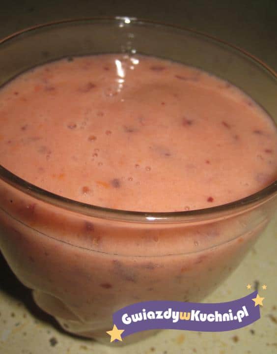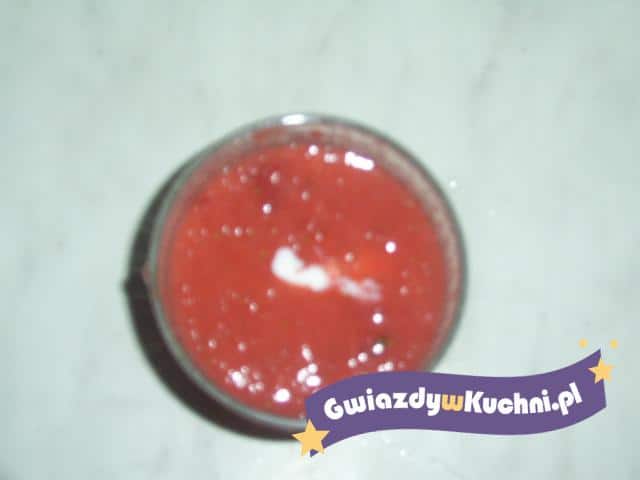 Truskawki zmiksować, dodać jogurt i wszystko razem wymieszać. (można dodać cukier).