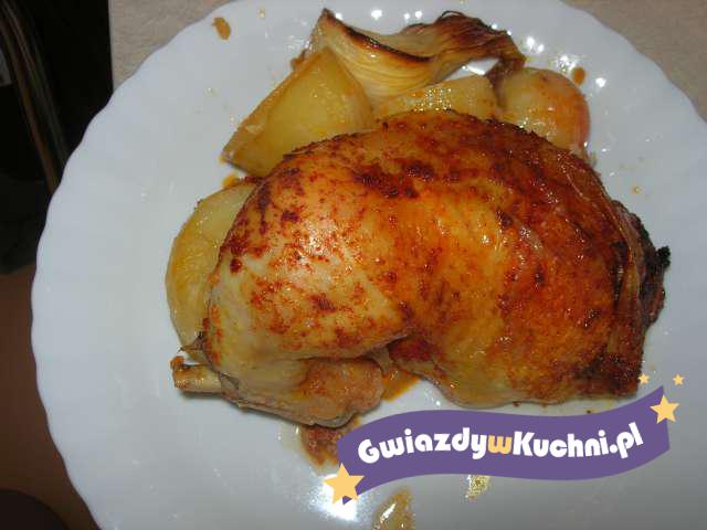 Mięso należy opłukać i osuszyć. Następnie natrzeć czosnkiem, solą i pieprzem. Płatki kukurydzianek pokruszyć i wymieszać z papryką w proszku. Udka natrzeć oliwą i obtaczać w płatkach. Układać je w wysmarowanym masłem naczyniu żaroodpornym i piec przez co najmniej 60 minut w temp. 200 stopni.