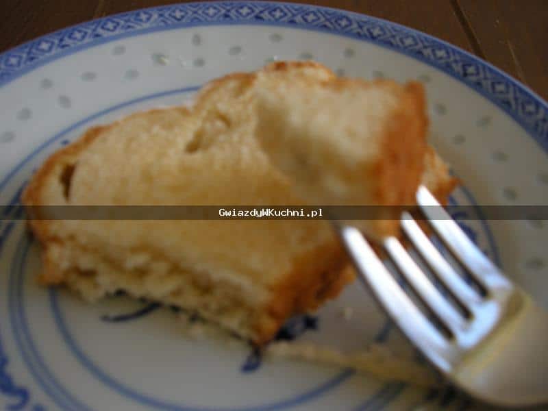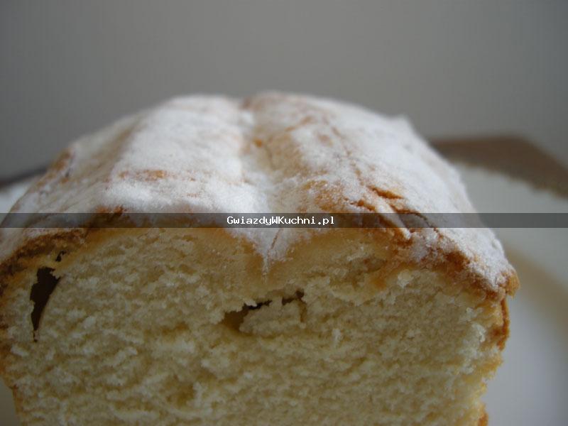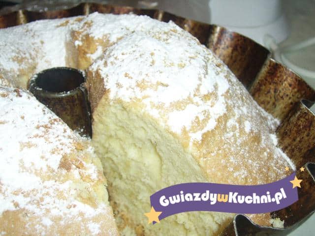 Po upieczeniu, jeszcze gorącą babkę posypujemy cukrem pudrem zmiksowanym z cukrem waniliowym.